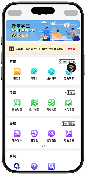 集合多种高效业务工具,新房佣金地图,客户管理系统,助力您用线下1%的成本快速在线上开店